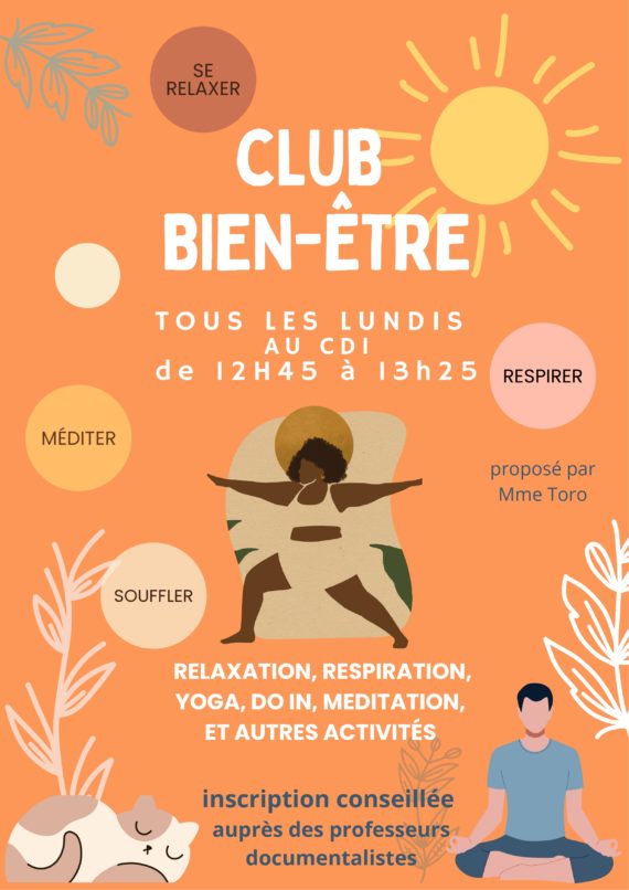 Le Club Bien-être, animé par Mme Toro, professeure documentaliste, accueille chaque semaine les lycéens et les étudiants désireux de s’accorder un moment de pause et de recentrage dans leur emploi du temps scolaire. Tous les lundis de 12h45 à 13h25, ce temps est entièrement dédié à votre bien-être. Dans un […]