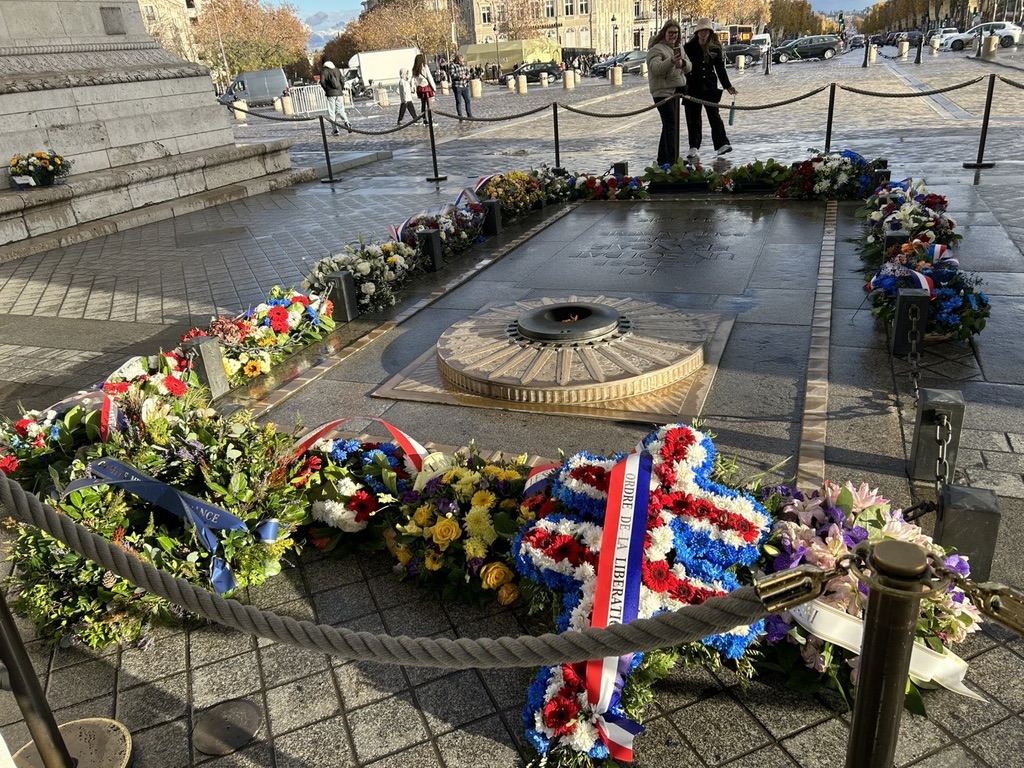 En redescendant, nous nous sommes arrêtés devant la flamme du Soldat inconnu, un lieu solennel chargé de sens.