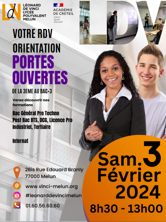 Nous avons le plaisir de vous convier à notre Journée Portes Ouvertes qui se tiendra le 3 février 2024, au Lycée Léonard de Vinci, au 2Bis Rue Edouard Branly à Melun Cet événement est l’occasion de découvrir : Qui allez-vous rencontrer ? Que pourrez-vous visiter ? Qu’allez-vous découvrir ? Toutes […]